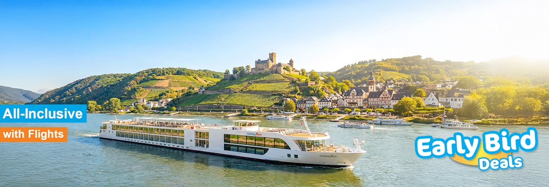 Experience the very best of European river cruising, with endless medieval castles, sweeping vineyards and fairytale towns onboard our luxurious rivership. Discover the diversity of Amsterdam, Zurich, Strasbourg, Cologne, Mannheim & Heidelberg, Cochem, Koblenz, Nijmegen, Rudesheim and the Loreley passage. These incredible destinations will live with you forever. Enjoy premium river cruising on the boutique-sized modern rivership – where the spacious decks harness panoramic views and plush amenities cater to every whim. Delight in the storybook scenery of the legendary Rhine Valley as we cruise through the very heart of Europe, passing magnificent medieval towns, historic hilltop castles, quaint half-timbered villages and steep terraced vineyards. Enjoy stays in bohemian Amsterdam and sophisticated Zurich. Fall in love with Amsterdam's dreamy canals, iconic tulip gardens and bicycle-lined streets. Be seduced by Zurich's chic sophistication, where pristine lakeside views meet urban allure and Alpine magic. Cruise through Europe’s most evocative landscapes along the Rhine, Mossel and Waal rivers, including the most concentrated stretch of castles in all of Europe and navigate the famous ‘s’ bend of Loreley passage. Be dazzled by medieval Cologne's towering cathedral bathed in Rhine romance. Immerse yourself in Strasbourg's picture-perfect French beauty, where half-timbered houses and cobbled streets epitomize Alsatian appeal. Uncover Mannheim’s modern energy and baroque elegance. Lose yourself amidst the fairytale cobbled-stone streetscapes of Heidelberg. Revel in Cochem's storybook charm with the iconic Reichsburg Castle overlooking the dreamy Moselle River. Wander the Roman streetscapes of Koblenz amidst a tapestry of natural beauty. Discover Nijmegen's historic Dutch charisma and strategic Western Front role. Embrace the dreamy Altstadt (old town) and vineyard-clad hillsides of Rudesheim, a wine lover's paradise. Immerse yourself in European culture and delight in delicious local cuisine and Rhine Valley wines. Spend 2 full days in Amsterdam, including flexi-tours of this magnetic city and enjoy a free day to explore sophisticated Zurich. Cruise aboard our premium boutique-sized rivership, exclusively for HolidayMax guests for a more fun and enjoyable experience. Breathe in the intoxicating vistas as you cruise the mesmerizing Rhine, Moselle and Waal Rivers. Experience indulgent European hospitality onboard this premium rivership. Everything is included in this amazing value package, premium cruise with all meals, flights, Amsterdam and Zurich hotels, Amsterdam touring and personalized transfers.Full Details